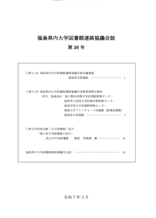 福島県内大学図書館連絡協議会会則 ・・・・・・・・・・・・・・・・・・・ 20