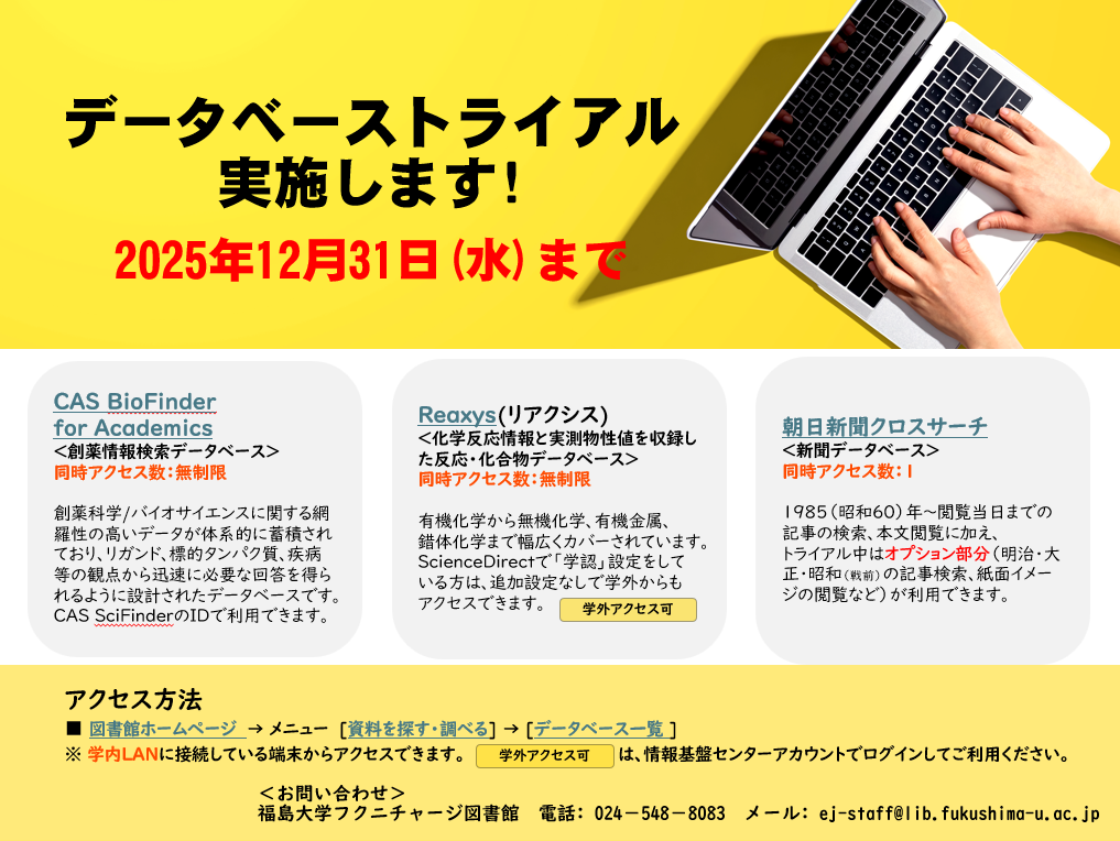 ・11/1(土)-12/31(水) Reaxys<化学データベース>