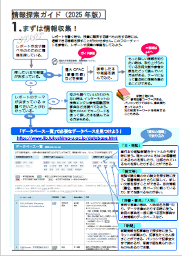 レポートや論文作成の際の情報収集方法についてまとめたガイドです。